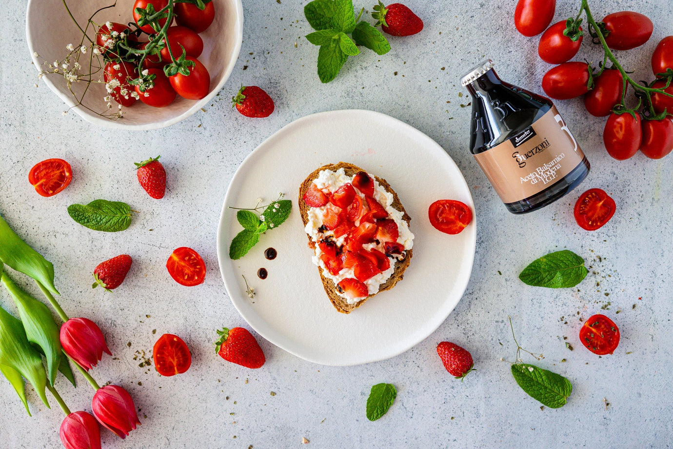 Guerzoni Bio-Biodynamischer Balsamico di Modena IGP: Das perfekte Dressing, um Erdbeeren zu verfeinern.