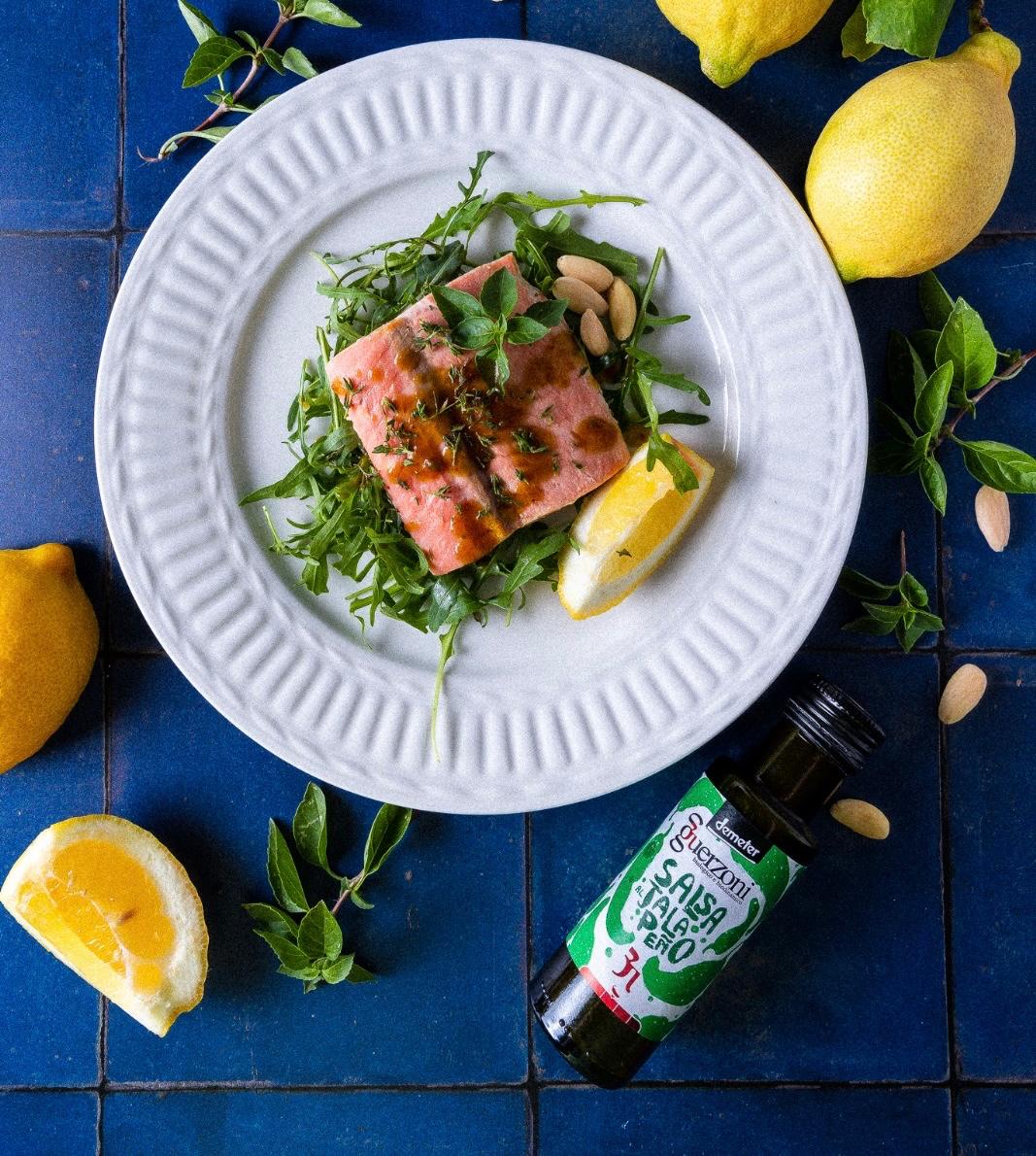 Salmone in Padella con Erbe Aromatiche e Salsa Jalapeño di Acetaia Guerzoni